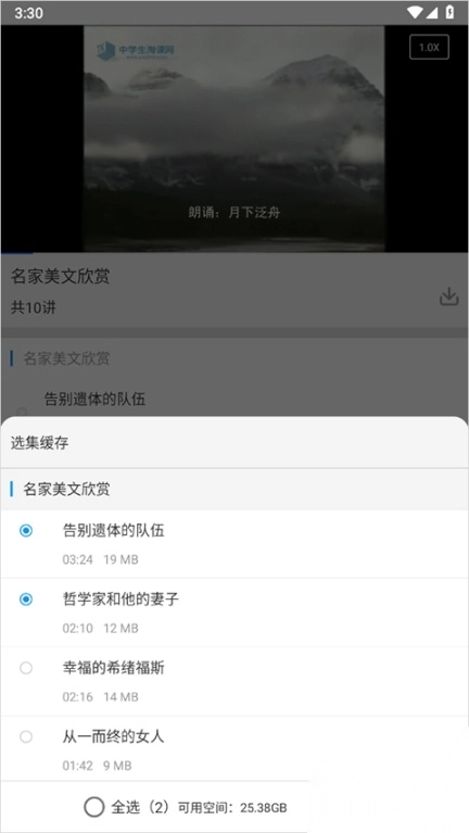 选择要的课程后,点击页面右下角的【确定缓存】