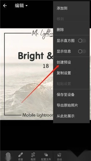 1、使用Lightroom自动照片编辑器,一键快速修图。