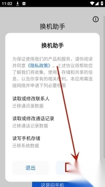 请先安装天翼换机助手,安装完成后打开该应用;进入应用界面后,找到并点击“同意”按钮,以此确认同意其隐私政策。