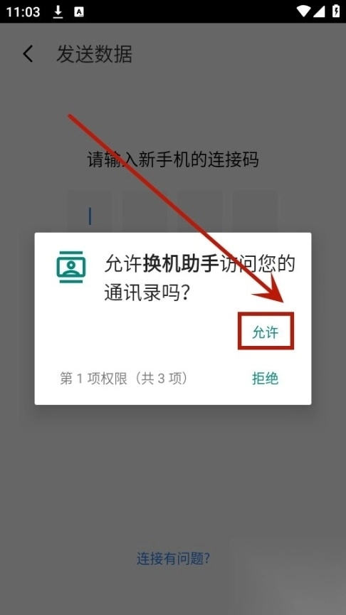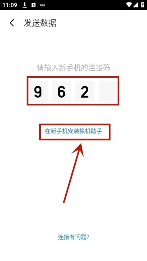 输入连接码,并且点击在新手机安装换机助手