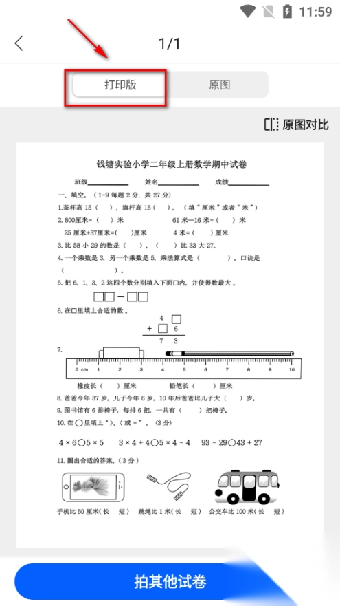 点击扫描试卷