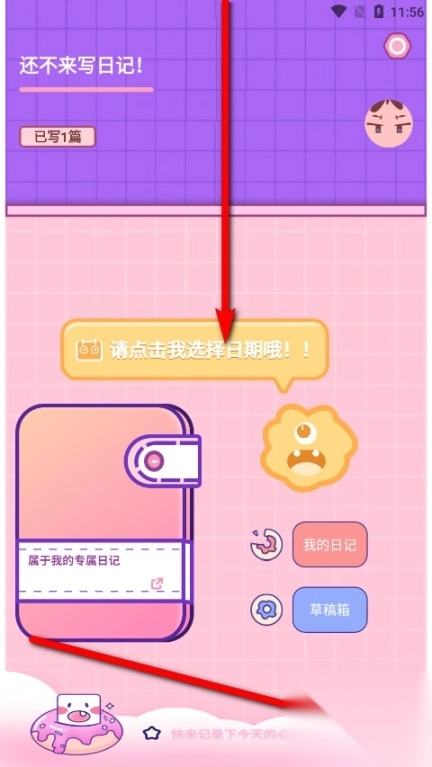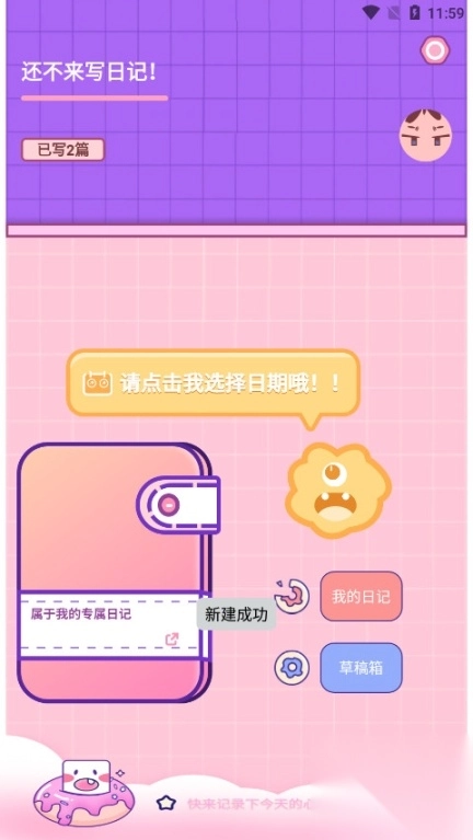 点击右上方的√符号完成保存,随后回到初始界面,系统会弹出提示告知新建日记文本已成功创建。