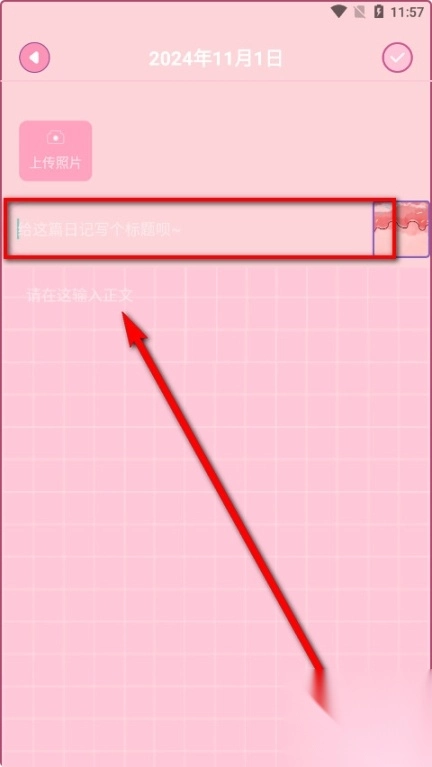 日记 标题处拟定好题目,在内容区域详细写下你想要记录的事件具体情况。
