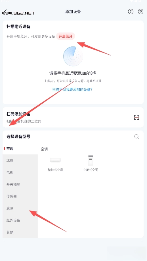 完成上述操作后,进入设备添加详情页面,通过开启蓝牙连接或者直接扫码连接的方式即可完成操作。