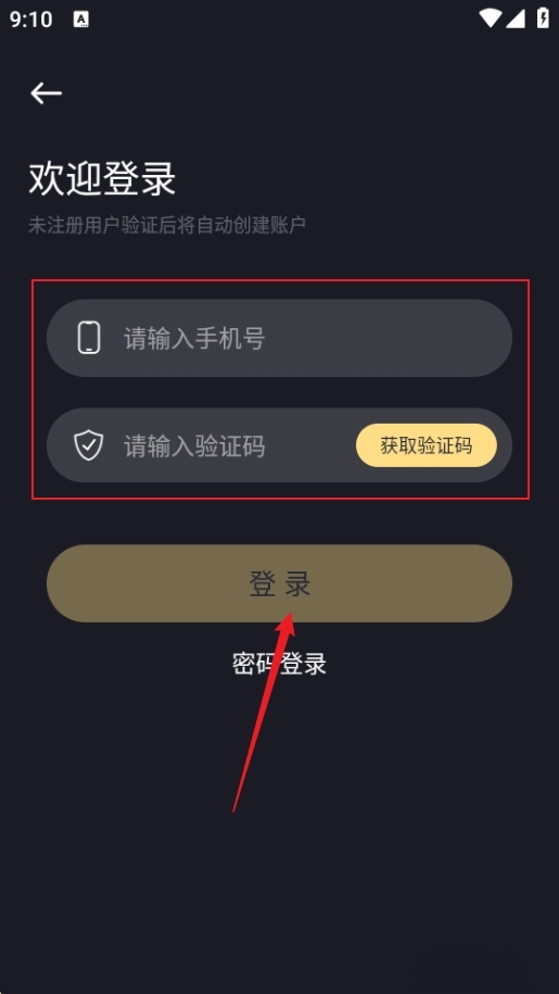 输入手机号验证码登录即可