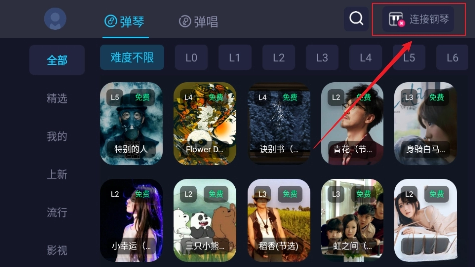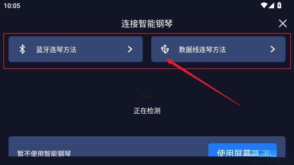 进入软件点右上角连接钢琴