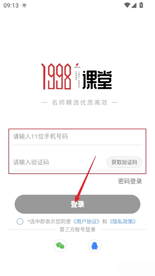 进入该软件后,输入手机号并填写验证码就能完成登录,此外也支持通过QQ、微信等社交账号进行登录操作。