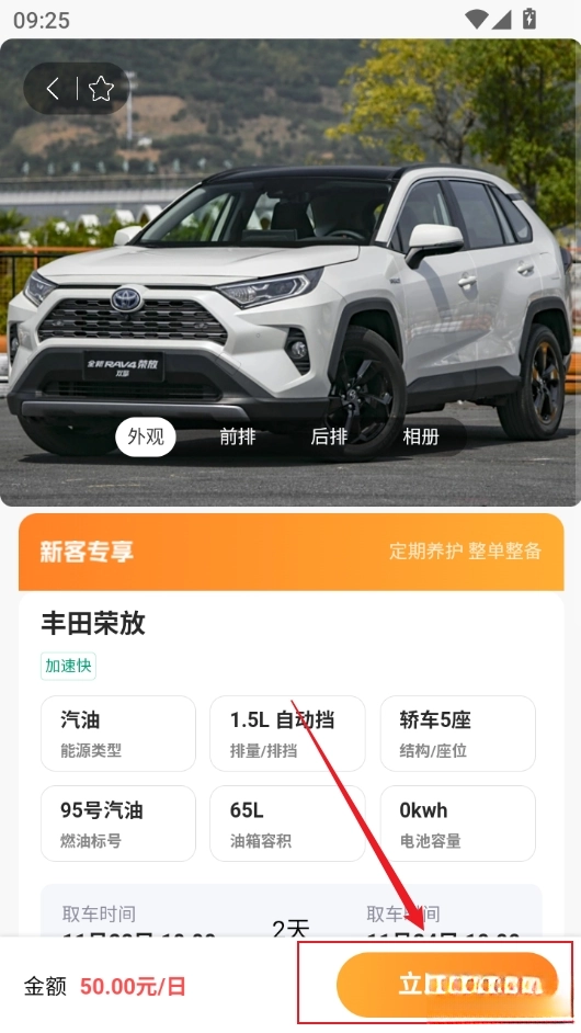 如果满意,可以点击立即预订,等待取车即可