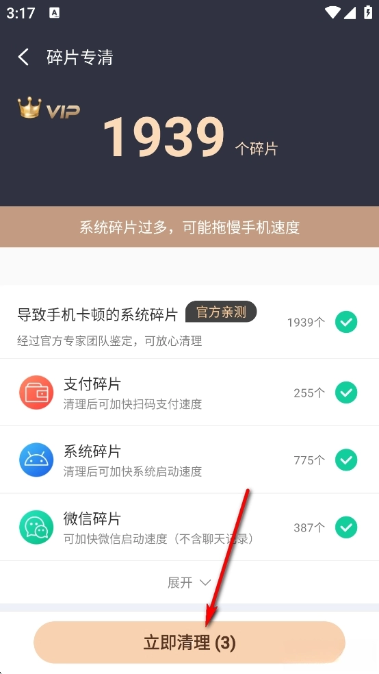 点击【立即清理】