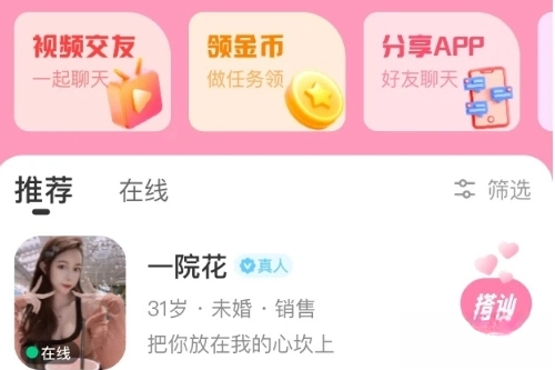 沉浸式视频速配:创新打造30秒快速视频匹配模式,配备实时美颜与虚拟背景功能,用户只需一键即可开启高清视频对话,直观领略对方气质,有效降低“照骗”可能性。