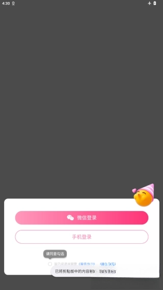 打开软件,提示同意与否,点击同意进入