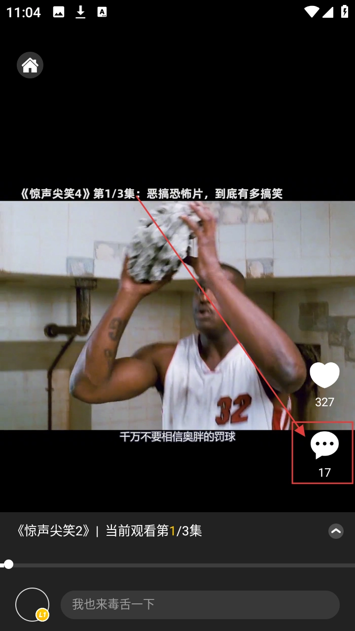 在毒舌影视的首页,找到《惊声尖笑4》的推荐板块并点击,就能进入这部影片的播放页面,接下来就可以参与评论互动了。