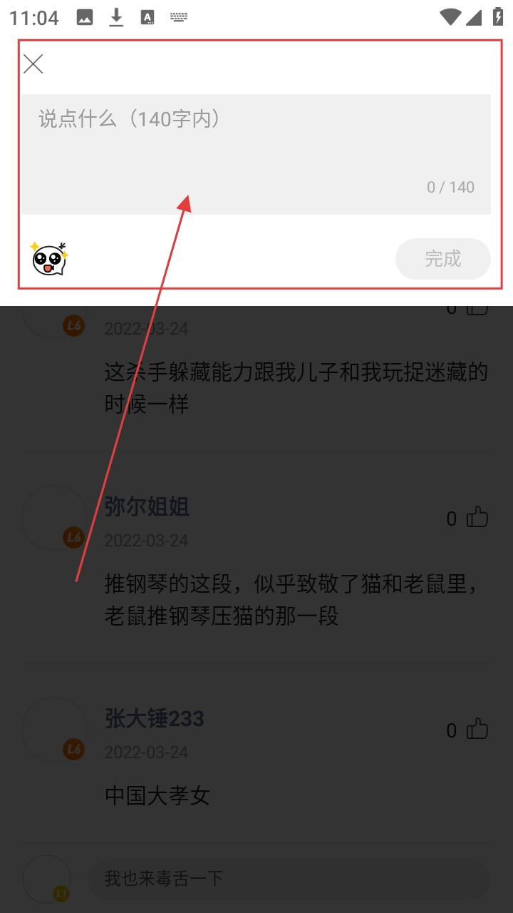 在评论区页面,点击底部的“我也来毒舌一下”输入框,就能进入评论编辑页面,开始准备输入自己的评论啦。
