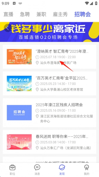 2、点击屏幕右上角的“招聘会”。