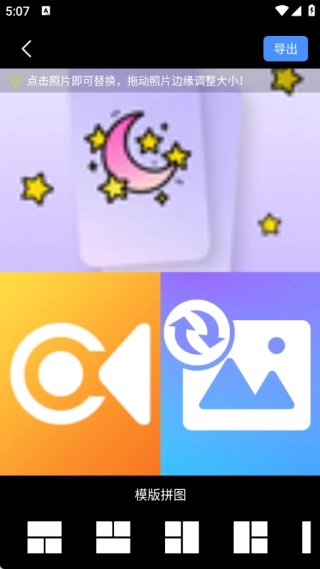 一键拼图功能可实现多图组合,能自由调整布局与间距,生成高清拼图后保存到相册,只需简单几步就能完成创意表达。