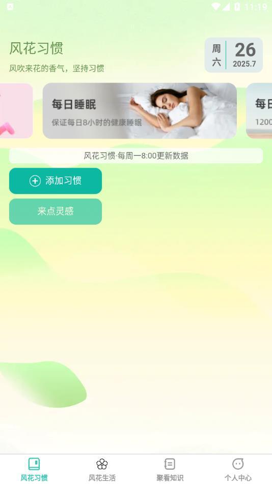 风花聚看是一款专注于探索美好生活体验的手机应用,能助力用户管理健康状况、养成良好习惯、发掘生活灵感并获取实用知识,从而达成健康养生与品质生活的双重目标。除了健康管理类功能外,它还设有聚看知识板块,内容覆盖办公软件操作、编程学习、外语提升、营销技巧等多个领域,为用户的学习与自我提升提供便利。