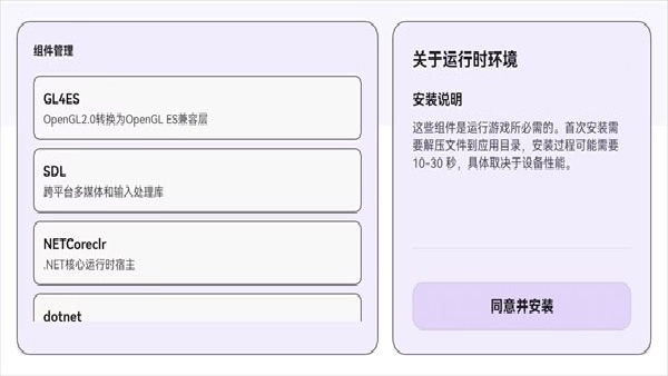点击【同意并安装】安装运行环境和组件