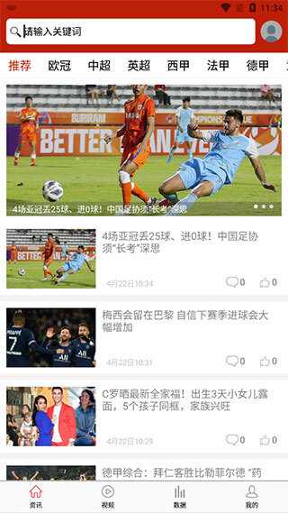 1、打开软件后,在首页就能浏览到大量感兴趣的球赛信息和球队动态。