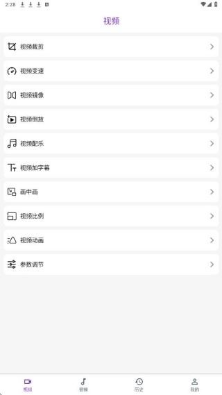 在视频页面上,呈现出裁剪、变速、镜像等多种功能,能让用户轻松完成剪辑操作。