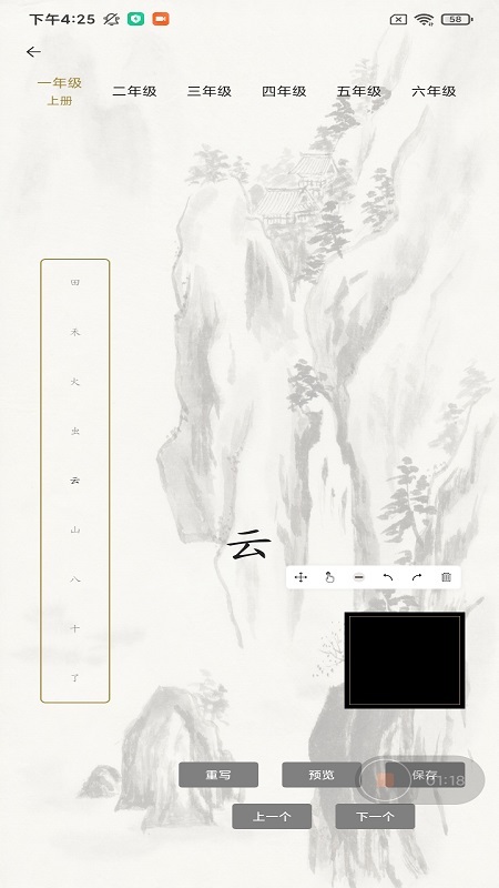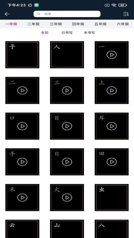 2、进入主界面后,选择对应的年级,系统便会自动推荐适配该年级的书写内容。