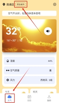 打开软件后直接查看首页,在页面左上角能找到添加城市的按钮,点击该按钮即可开始相关操作。