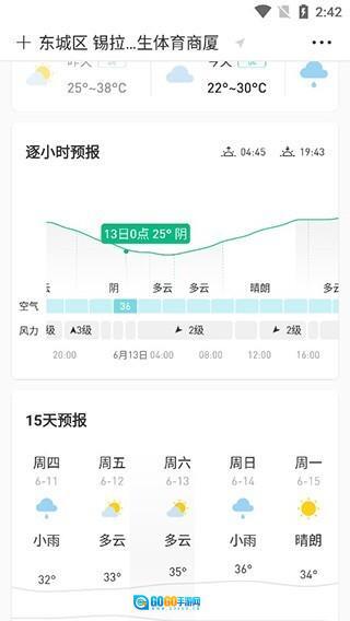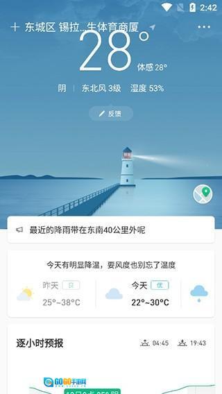 2、设置完成后,软件界面即显示今天的天气情况,非常直观