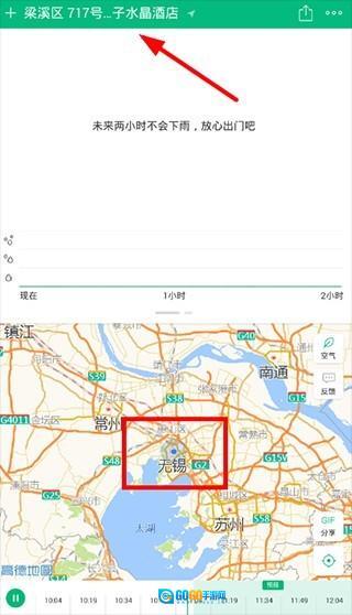 3、如此一来,大家可以从左上角看到自己所在的具体位置,同时也能了解到所在地附近的天气情况,非常的方便实用!