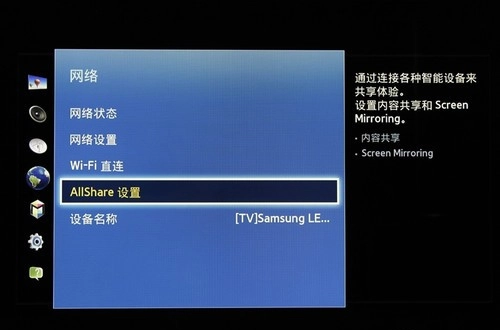选择网络后,选择ALLShare设置