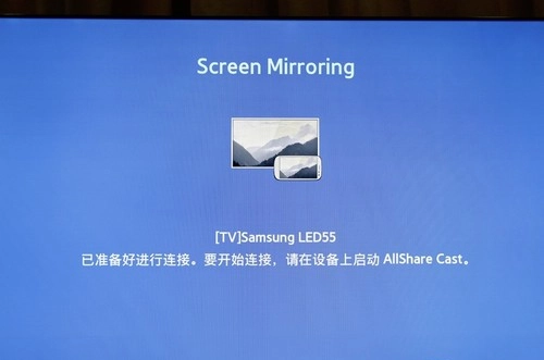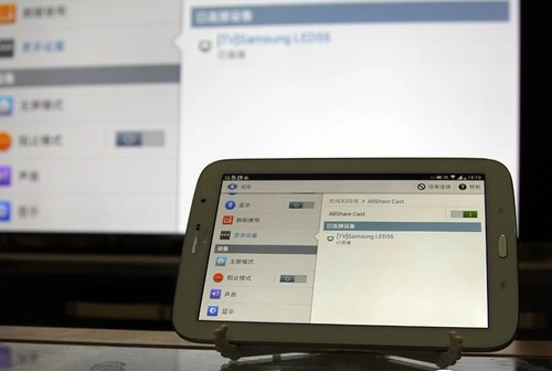 F8000的遥控器采用触控与按键相结合的设计,滑动操作十分灵敏,使用体验流畅,能让人清晰感受到高端智能电视产品特有的舒适使用感。我们在菜单里依次选择项目、网络、Allshare设置、ScreenMirroring,这时电视屏幕会提示连接已准备就绪,接着启动设备上的AllshareCast功能即可。