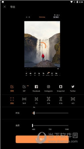 2、选择导出的视频时长,画质等;