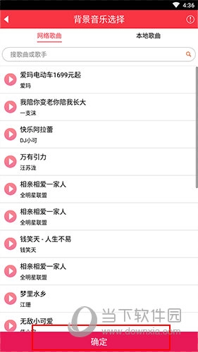 6、选择要添加的音乐,点击下方的“确认”即可。