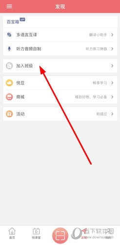 1、悦作业学生版可以帮助广大学生更加方便的进行学习,小编了解到很多刚开始使用的用户的不知道怎么加入班级,想知道的赶快来看看下面的教程吧!首先需要先进入到“发现”栏目,点击其中的“加入班级”选项即可开始加入,如下图所示: