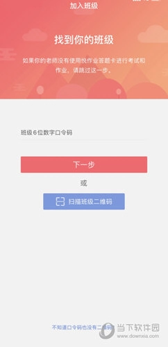 2、进入到加入班级的界面,用户可以在此界面输入老师所提供的的班级6位数字口令码进行加入,也可以扫描班级二维码进行加入,如下图所示: