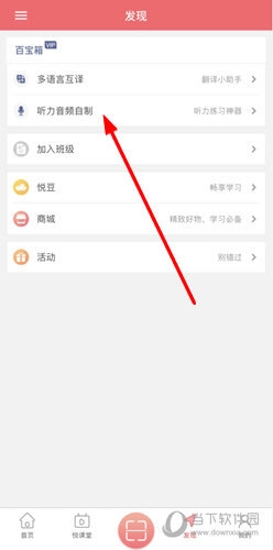 1、悦作业学生版拥有听力练习功能,如果你想要在此软件中听听力,只需在发现栏目找到“听力音频自制”功能即可开始进行听力练习,如下图所示: