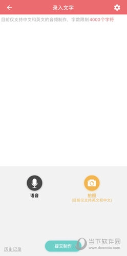 2、在上方的录入文字界面复制中文或英文的听力文字,,也可以通过语音、拍照的形式进行听力文字导入,最多可达4000个字,输入完成后,点击“提交制作”即可制作专属于你的听力内容,如下图所示: