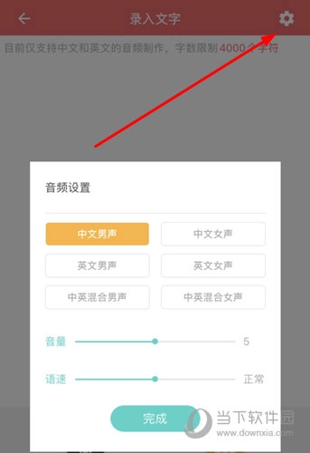 3、大家在听听力前,还可以通过点击音频设置选项,调节听力的风格、音量与语速,如下图所示: