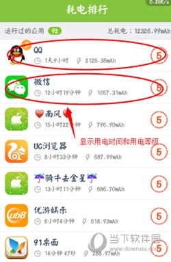 4、耗电排行:精算应用耗电占比轻松管理耗电应用