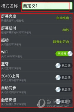 3、进入自定义模式后,可对模式进行自定义命名,接着挑选下方有助于省电的相关功能,最后点击保存即可。