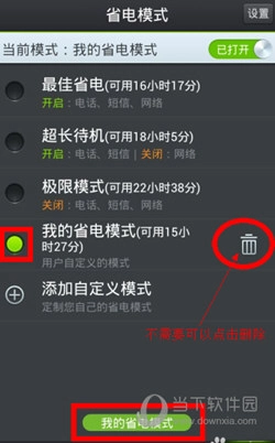 5、确认后,系统会自动切换至你的自定义模式以实现省电,若无需此模式,可点击右侧的删除按钮。
