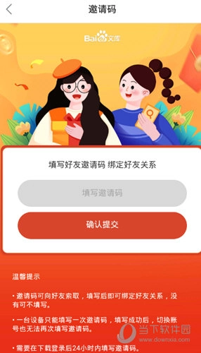 2、邀请码可向好友索取,一台设备仅能填写一次邀请码。