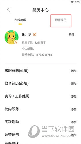 3、在简历中心界面,点击右上方的“简历附件”。