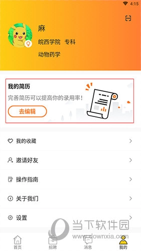 2、点击我的界面上方的“我的简历”选项。