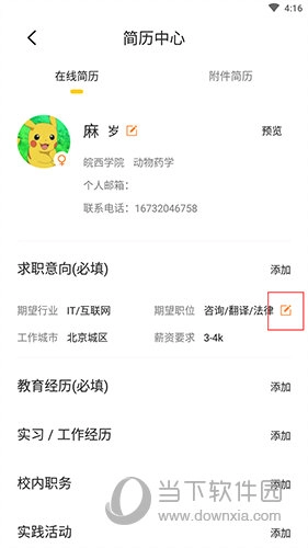 6、保存成功后,简历即成功上传,点击简历右侧的编辑选项即可对简历进行修改。