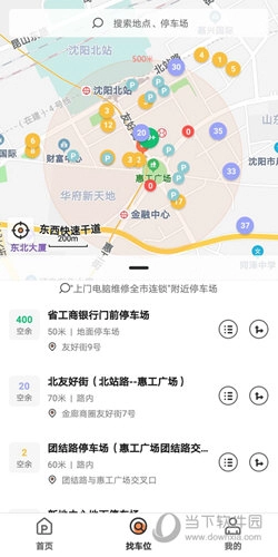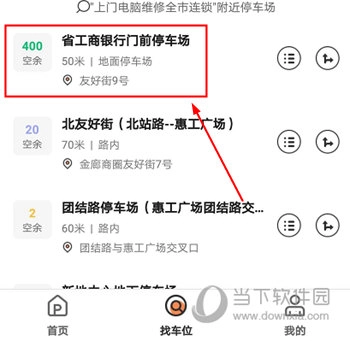 2、接着就能展示出当前位置周边的停车场以及其他特定的停车场了。