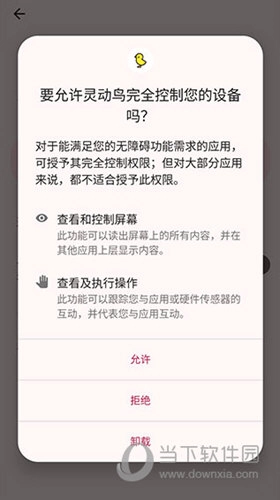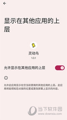 1、接着打开灵动鸟,进入下方界面后,根据界面提示,授予灵动鸟悬浮窗口权限(或显示在应用上层权限)