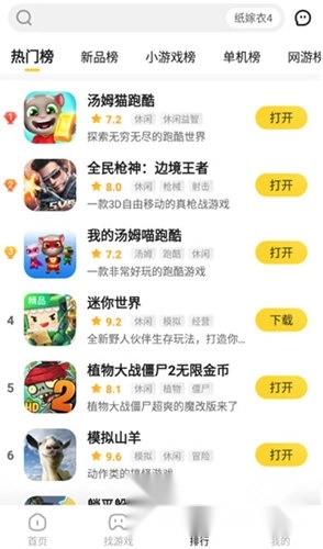 2、在“找”页面或者“排行”页面里,找到自己想玩的一款游戏。