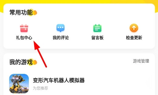 1、在个人中心,点击“礼包中心”。