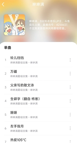 4、搜索之后可以看到详细的音乐歌单,在其他平台需要付费才可以听的音乐在这里全部都可以免费听;