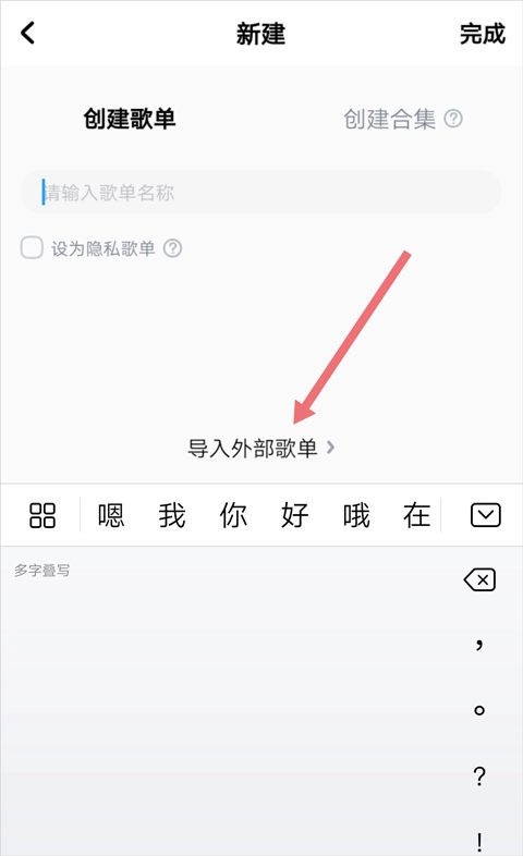 2、用户在创建歌单时就可以通过歌单链接导入进来