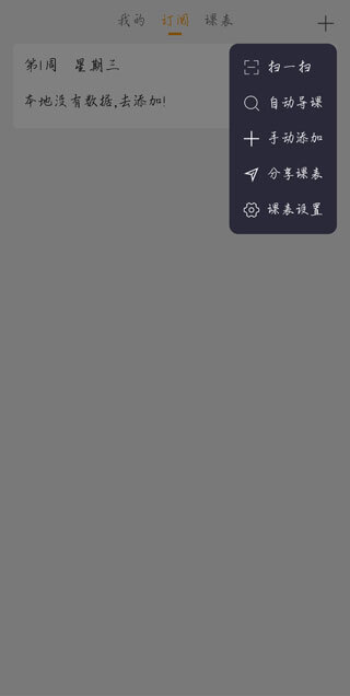 2、要是之前用过超级课程表,可点击订阅页面下方的导入课程选项,选择从超级课程表账户进行导入;
